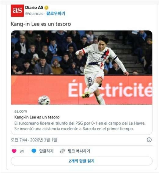 | * | [스포츠] | 르아브전 1어시 이후 스페인 언론의 이강인 평가 | 살라딘 | 2026/03/01 |