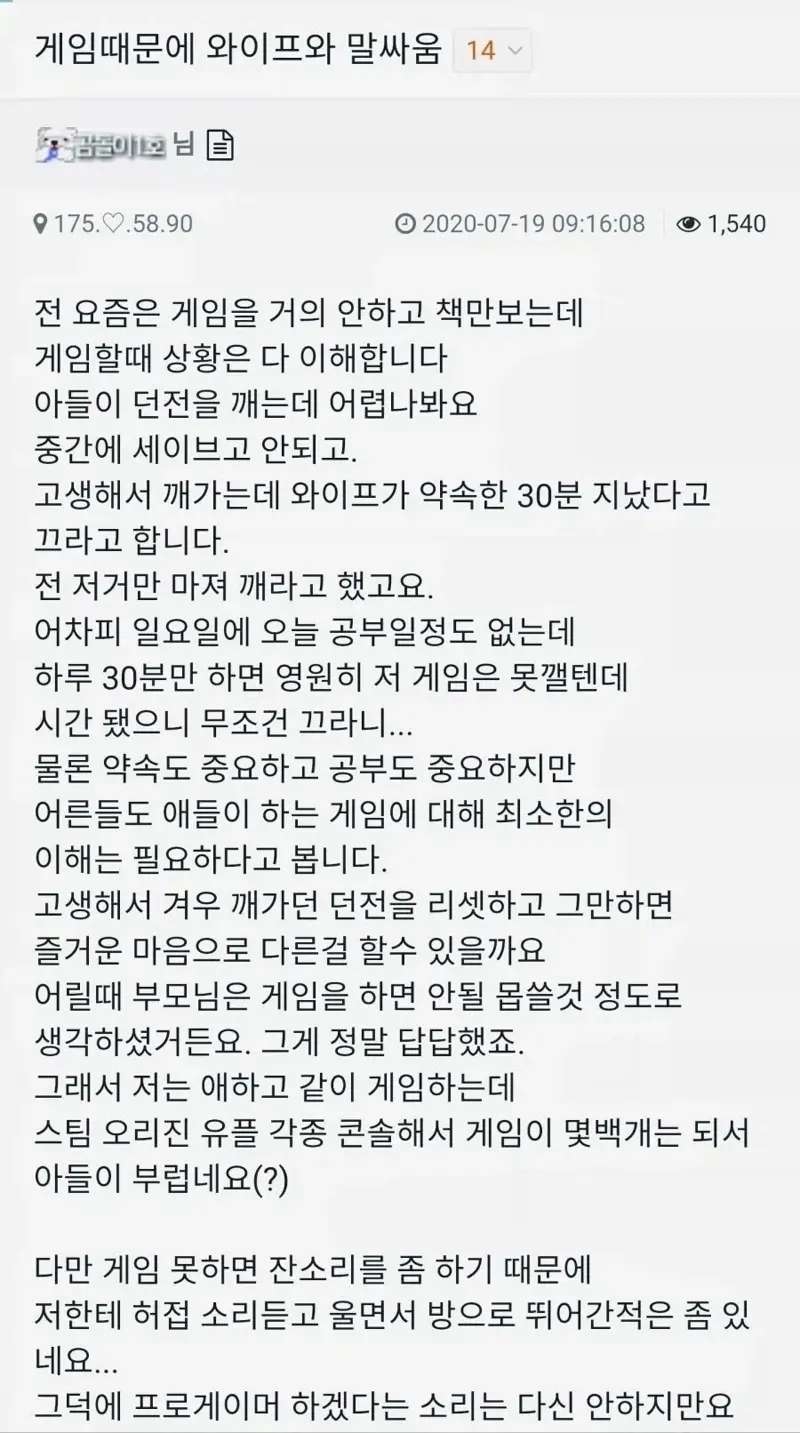 게임 때문에 와이프와 말싸움