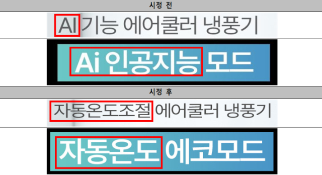 이번 조사 결과 단순 센서 기술이나 자동 제어 기능을 마치 AI 기술인 것처럼 포장한 사례가 다수 있었다. 일례로 냉풍기 온도 센서 기반 자동 풍량 조절 기능을 AI 냉방 또는 AI 기능으로 광고한 제품이 있었다. 이에 공정위는 해당 문구를 자동 온도 조절 또는 자동온도 에코모드로 수정하도로 요구했다.