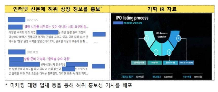 이런 소액의 성공 경험을 블로그와 인터넷 신문사 기사 형태의 콘텐츠를 대량으로 만들어 '상장 임박' '예비심사 통과 예정' '기관투자자 참여 완료' 등 정보를 퍼뜨린다. 동시에 회사 재무현황이나 투자설명서(IR) 자료를 조작해 올린다.