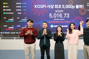 [IE 금융] 국내 증시가 '꿈의 지수'인 코스피 5000 시대에 도래했다. 이는 지난 1980년 코스피 지수가 산출된 이래 46년 만이다. 코스피는 작년 10월 4000선을 돌파한 지 불과 2개월 반 만에 1000포인트가 뛰어오르는 기염을 토했다. 22일 한국거래소에 따르면 이날 코스피는 전 거래일보다 1.57% 오른 4987.06으로 출발해 개장 직후 거침없는 상승세로 5000선을 돌파, 오전 9시6분 5011.09를 기록했다. 이후 10시36분 현재 소폭 하락한 4990대를 유지하고 있다. 코스피 5000대를 이끈 것은 시가총액 상위 대형주들이다. 삼성전자는 4% 넘게 상승하며 장중 '15만 전자'로 우뚝 섰으며 SK하이닉스도 3% 넘게 오르며 장중 77만 원선을 터치, 사상 최고가를 눈앞에 뒀다. 최근 20% 넘게 폭등한 현대차 역시 이날 급등세를 이어가며 지수 상승을 돕고 있다. 이날 코스피는 미국에서 분 훈풍이 기폭제가 됐다. 미국 도널드 트럼프 대통령은 사회관계망서비스(SNS) 트루스소셜에서 "그린란드와 북극 지역 협정의 틀을 마련했다"며 "이 해결책이 실현된다면 미국과 모든 나토 회원국에 매우 유익할 것으로 이런 합의를 바탕으로 내달 예정됐던