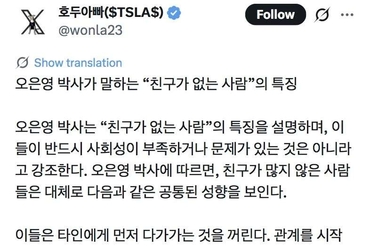 오은영 박사가 말하는 "친구가 없는 사람"의 특징