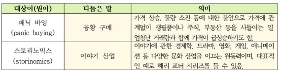 여기 더해 문체부와 국어원은 드라마, 영화, 게임, 애니메이션 등 다양한 문화 산업을 이끄는 원동력을 뜻하는 경제학 용어 '스토리노믹스'(Storinomics)의 대체어를 '이야기 산업'이라고 알렸다. 이야기 산업의 대표적인 예는 해리 포터 시리즈다.