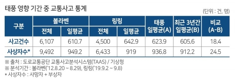 [IE 사회] 태풍 시 교통사고 사상자가 일평균 대비 매일 25명 더 발생한다는 연구 결과가 나왔다. 이에 따라 운전자들의 각별한 주의가 요구된다.