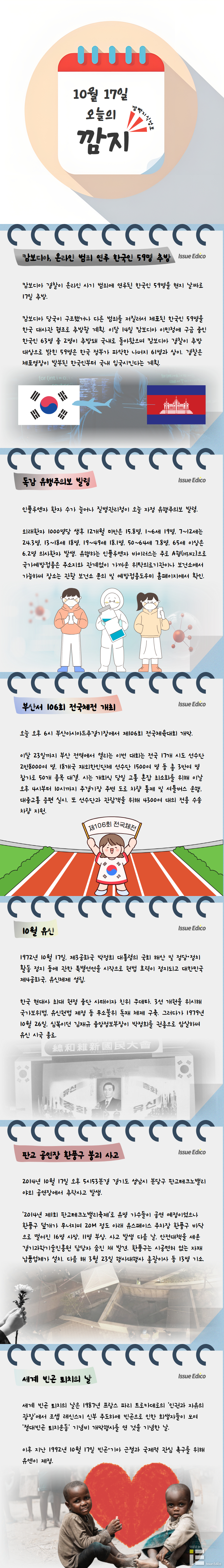 세계 빈곤 퇴치의 날은 1987년 프랑스 파리 트로카데로의 '인권과 자유의 광장'에서 조셉 레신스키 신부 주도하에 빈곤으로 인한 희생자들이 모여 '절대빈곤 퇴치운동' 기념비 개막행사를 연 것을 기념한 날. 이후 지난 1992년 10월 17일 빈곤·기아 근절과 국제적 관심 촉구를 위해 국제연합(UN)이 제정.