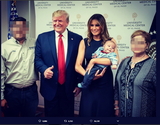 '때·장소 못가린 트럼프·멜라니아' 고아 된 아기 옆 '엄지척'사진 트윗
