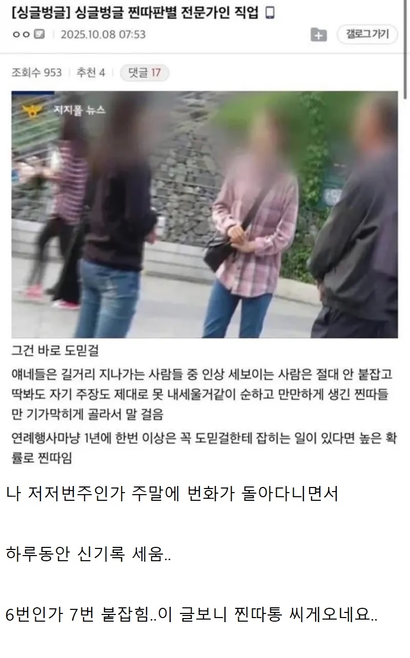 계속따라와서 귀찮게하면 경찰에 신고한다고 하면됨. 공권력은 무서운지 바로 떨어져나감.