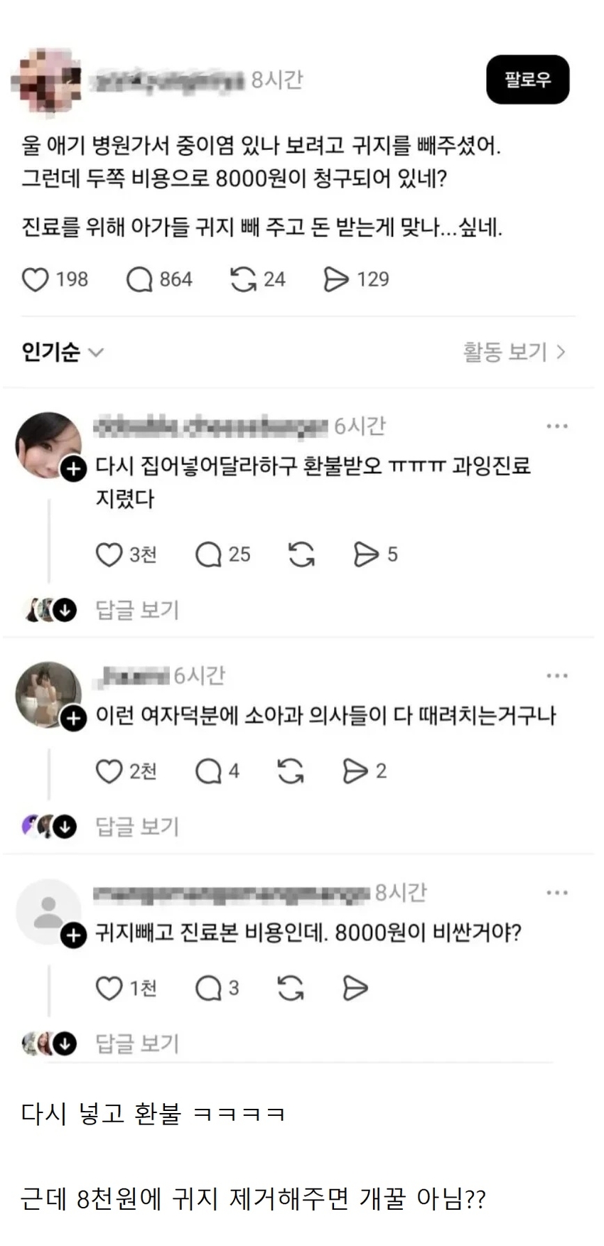 이비인후과 귀지제거 8,000원 정상이야