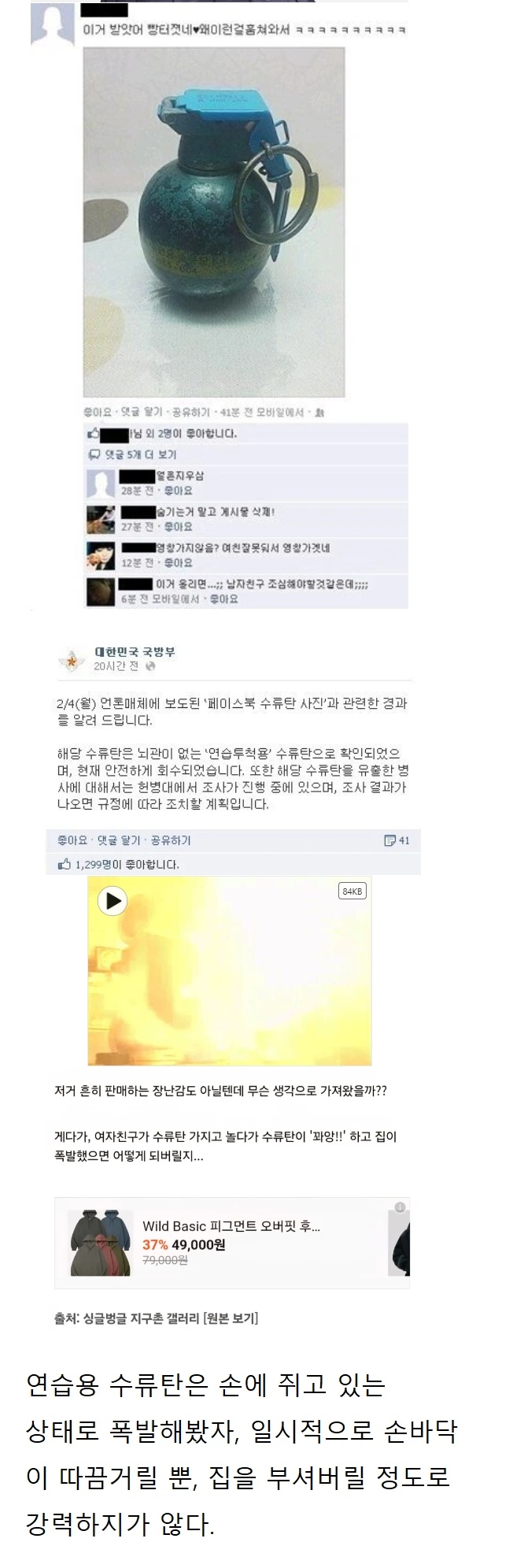 연습용수류탄인데 집이 왜폭발함 손위에서 터져도 살짝 뜨겁기만함 ㅋㅋㅋㅋㅋ