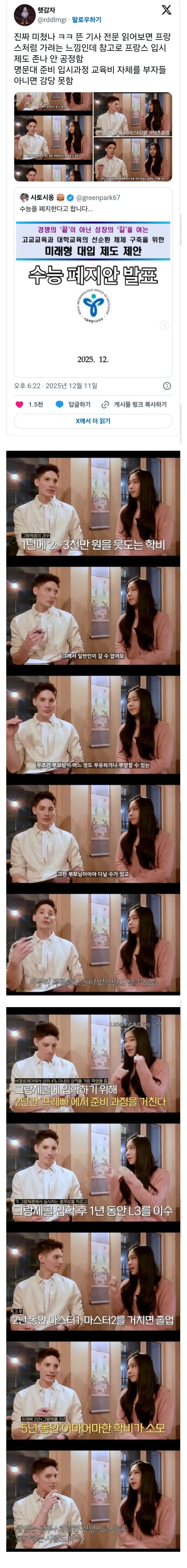 프랑스 입시제도 안 공정함. 명문대 준비 교육비 자체를 감당 못함