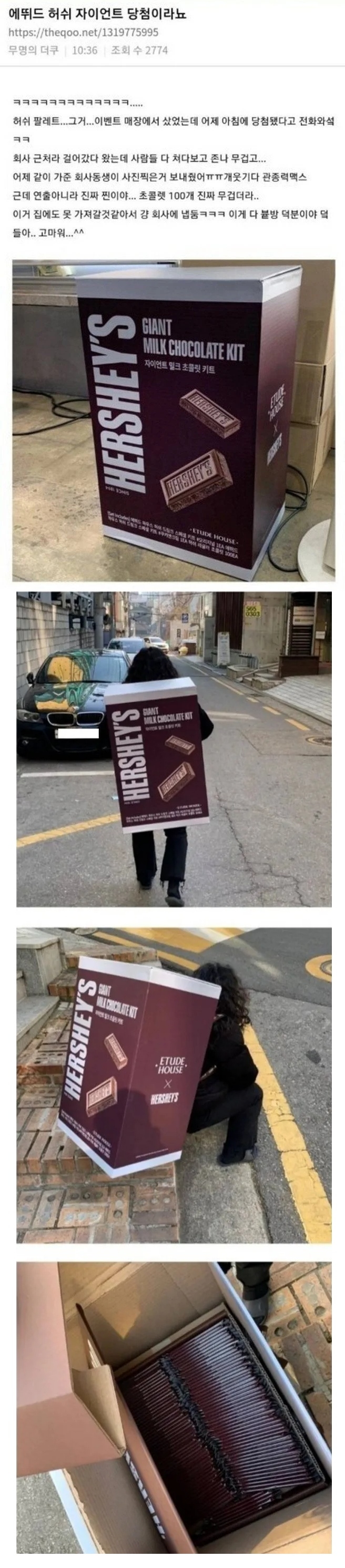 초콜릿 100개 당첨된 여자 후기