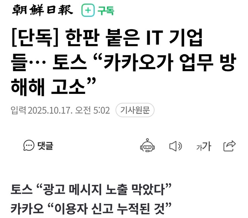 업무 방해 혐의로 카카오 형사 고소한 토스