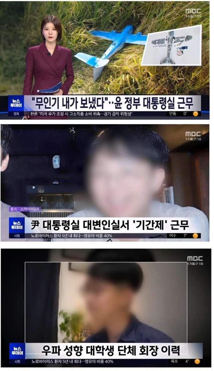 무인기 보낸 우파 성향 尹 대변인실서 근무