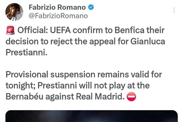 UEFA 프레스티아니 항소 기각