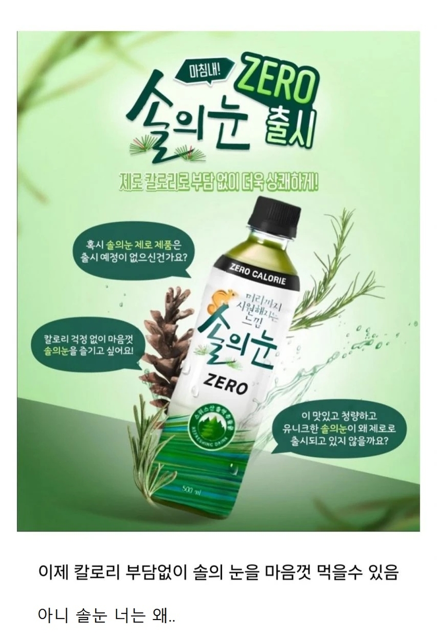 요즘은 솔향이 줄어서 끈적하고 단 솔잎 씻은 게토레이가 되었는데 과연 제로의 맛은 어떨런지