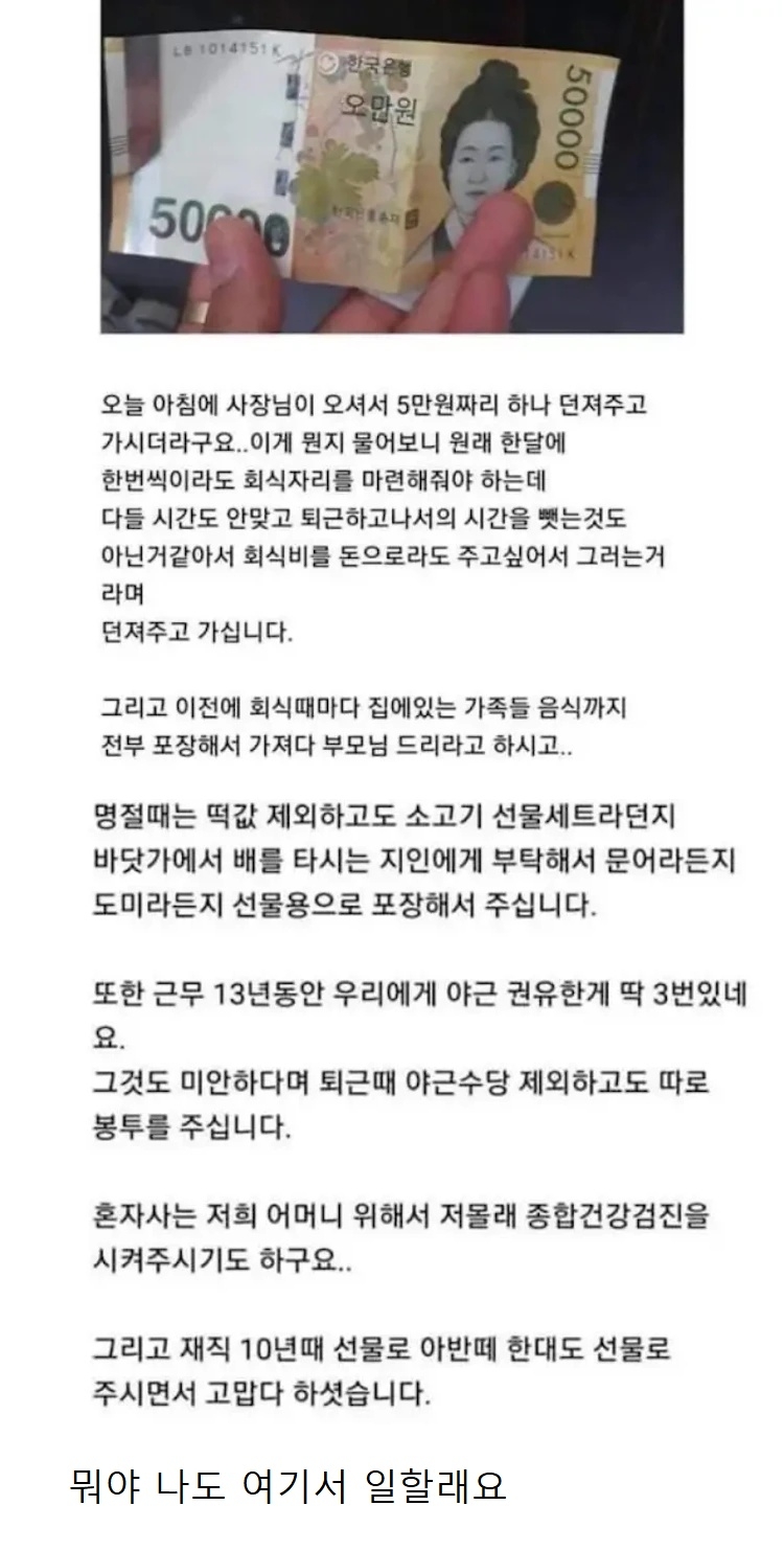 뭐지 진짜 사장님이 큰아빠라든가 하는 가족회사인거 아님? ㄷㄷ