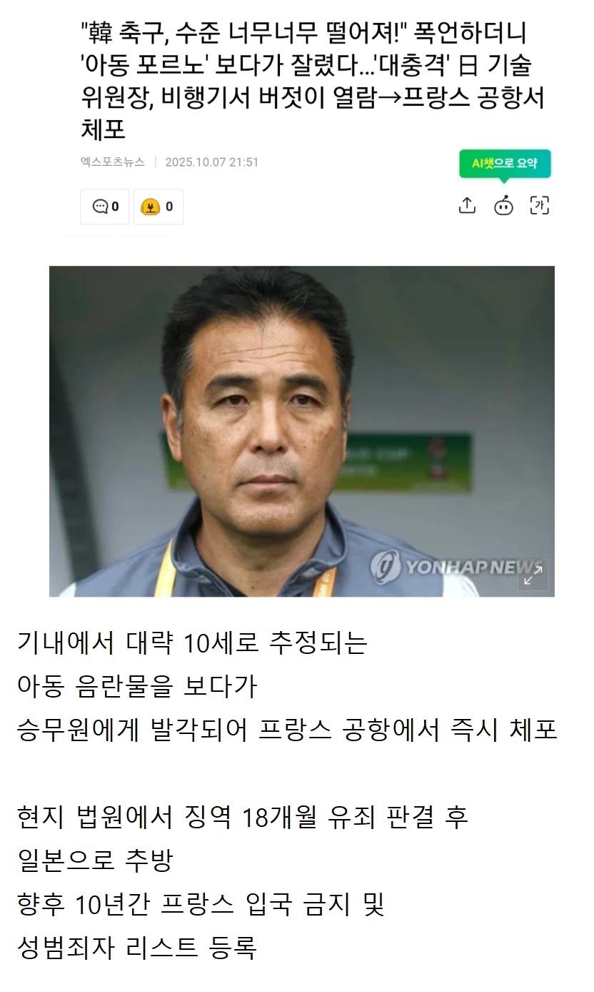 * | 일본 축구 기술위원장 프랑스에서 체포 [4] | 낭인캠퍼 | 2025/10/10 |