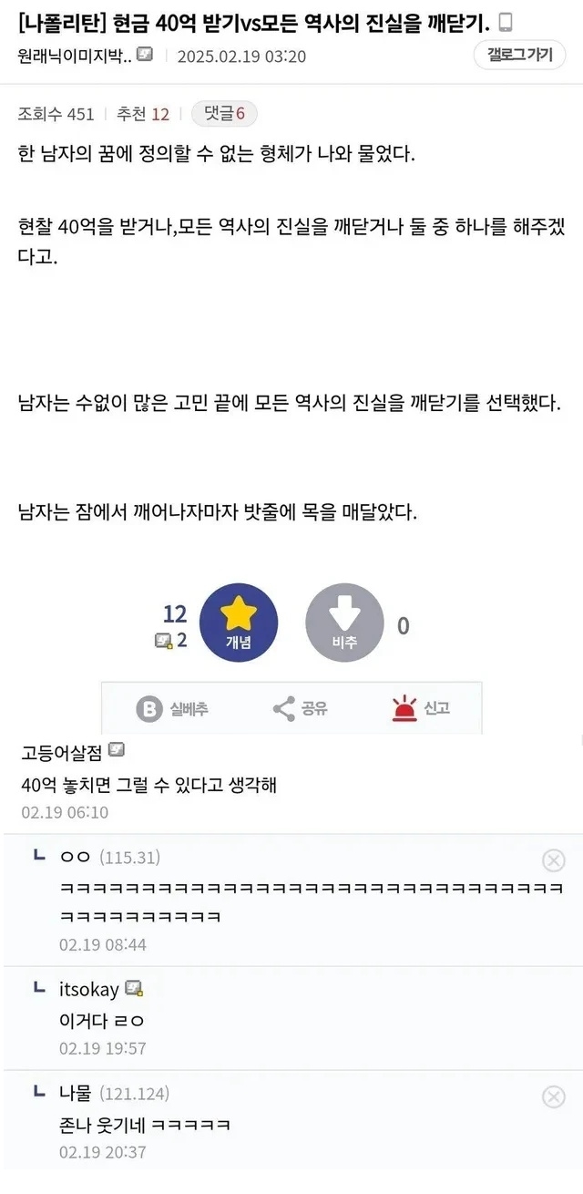 진실을 알게되도 증명할 방법이 없음 어떻게 잘 활용해서 책이라도 쓰면 40억은 금방인데