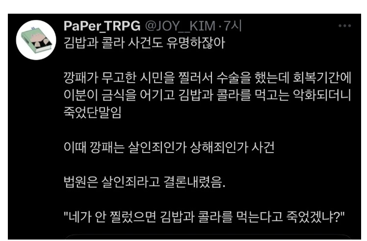 김밥콜라는 인과관계에서 넘 유명한 판례라ㅋㅋ