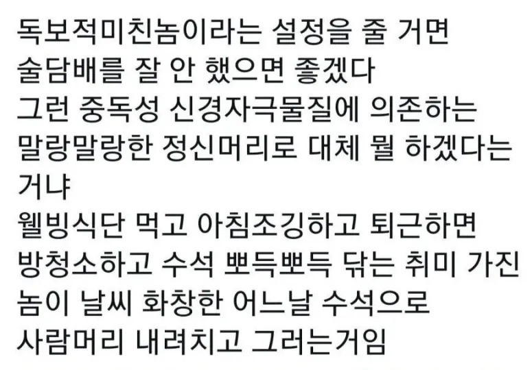 술, 담배, ㅁㅇ을 안하는데 이게 제정신인가 싶은 발언을 하는 인물..트 모씨?ㅋㅋ