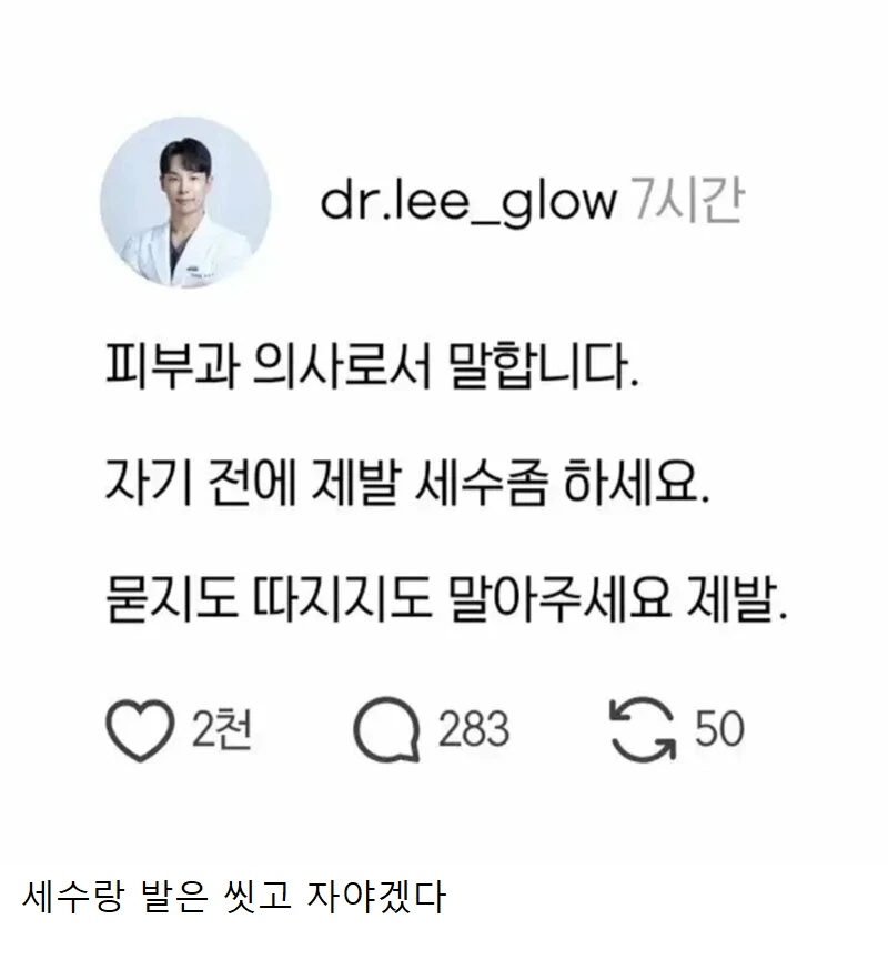 퇴근하고 씻은다음 휴식하다가 자기전에 또 세수하고 자라는거지? 양치하면서??