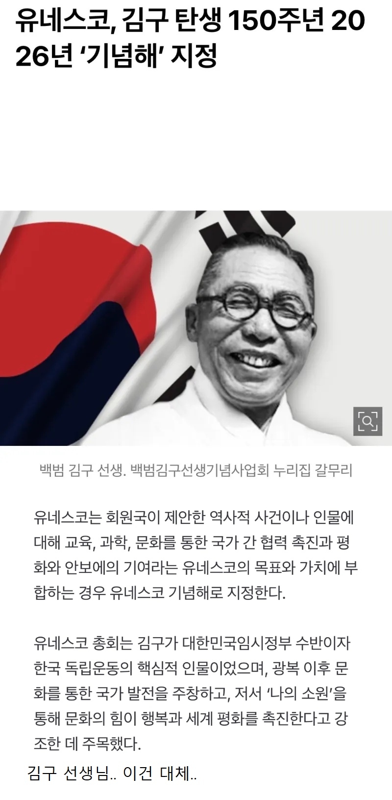 | * | 유네스코, “김구 탄생 150주년 기념” 2026년을 기념해로 지정. [4] | 금선기 | 2025/11/04 |