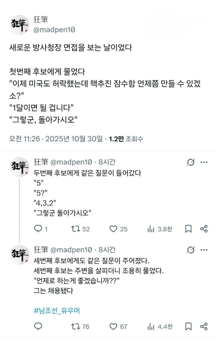 | * | 핵잠수함을 만드는데 걸리는 시간. [3] | 낭인캠퍼 | 2025/11/05 |