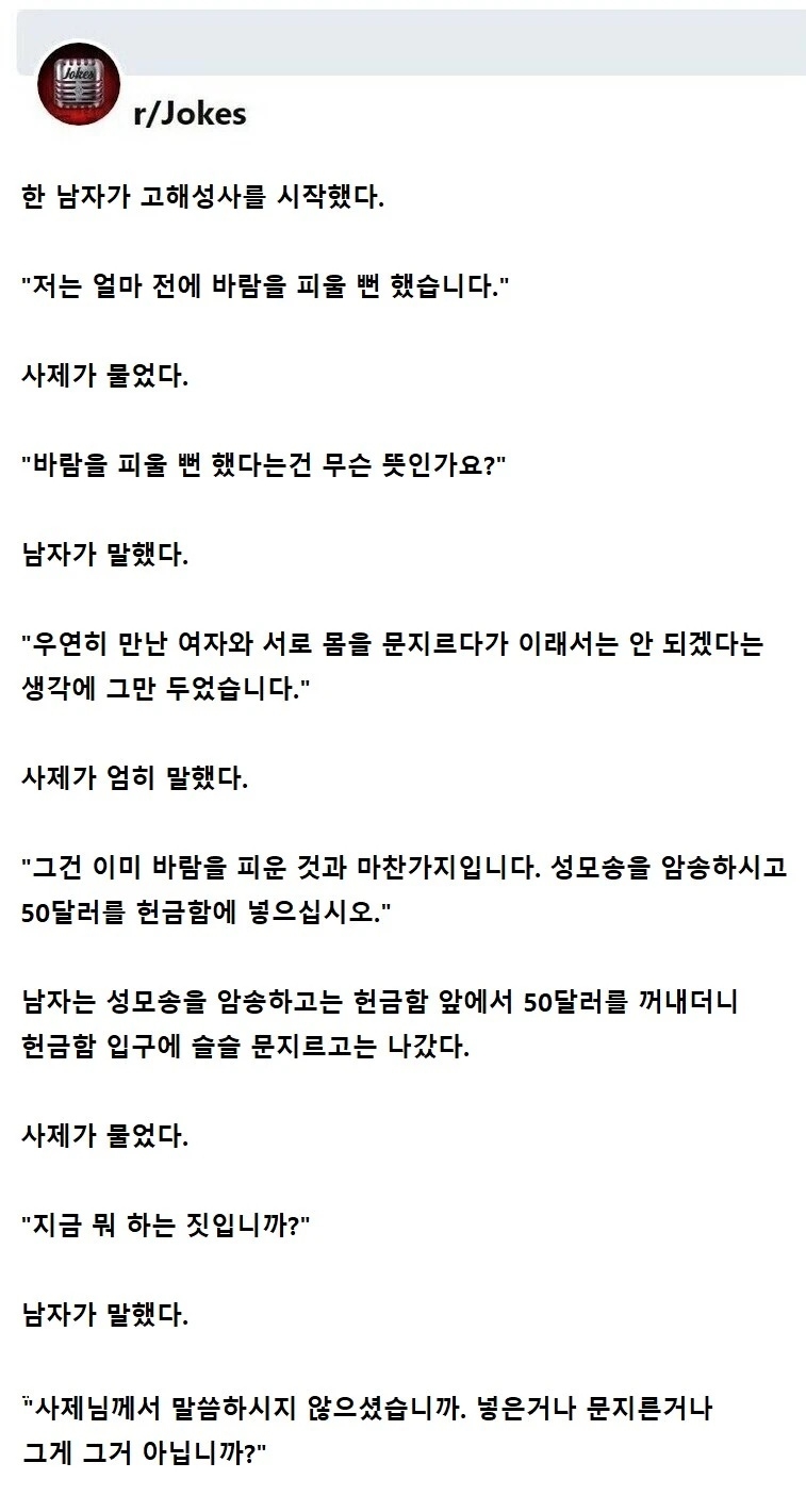 | * | 바람 피울 뻔 한 남자가 고해를 했다. [3] | 까칠한냥이 | 2025/11/05 |