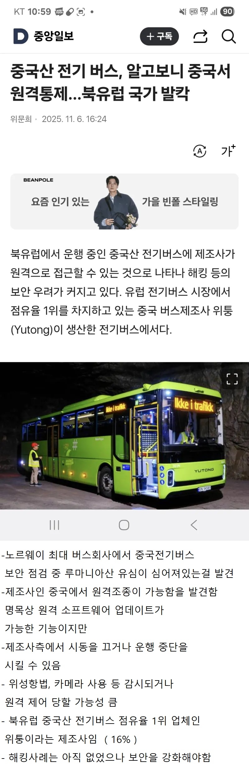 | * | 북유럽에 운영중인 중국산 전기버스에서 백도어 발견됨 [4] | 하얀물결 | 2025/11/10 |