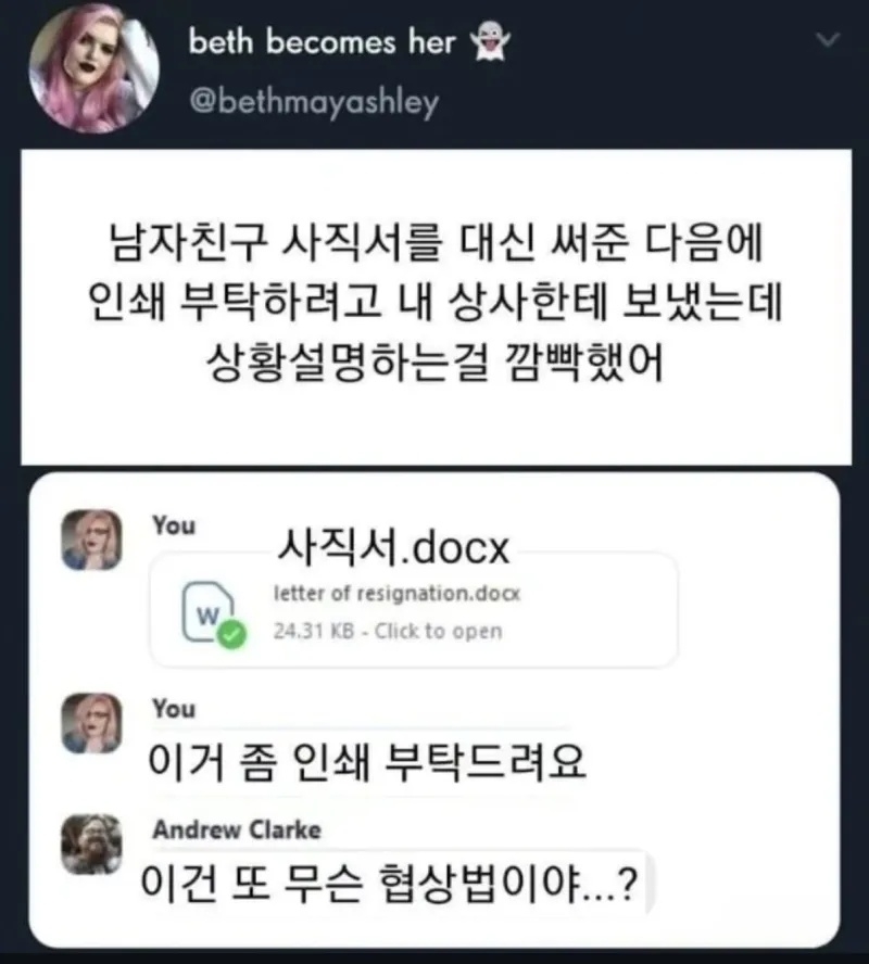 | * | 남자친구 사직서를 대신 써주고 인쇄하려고 상사한테 부탁했는데 [3] | 금선기 | 2025/11/20 |