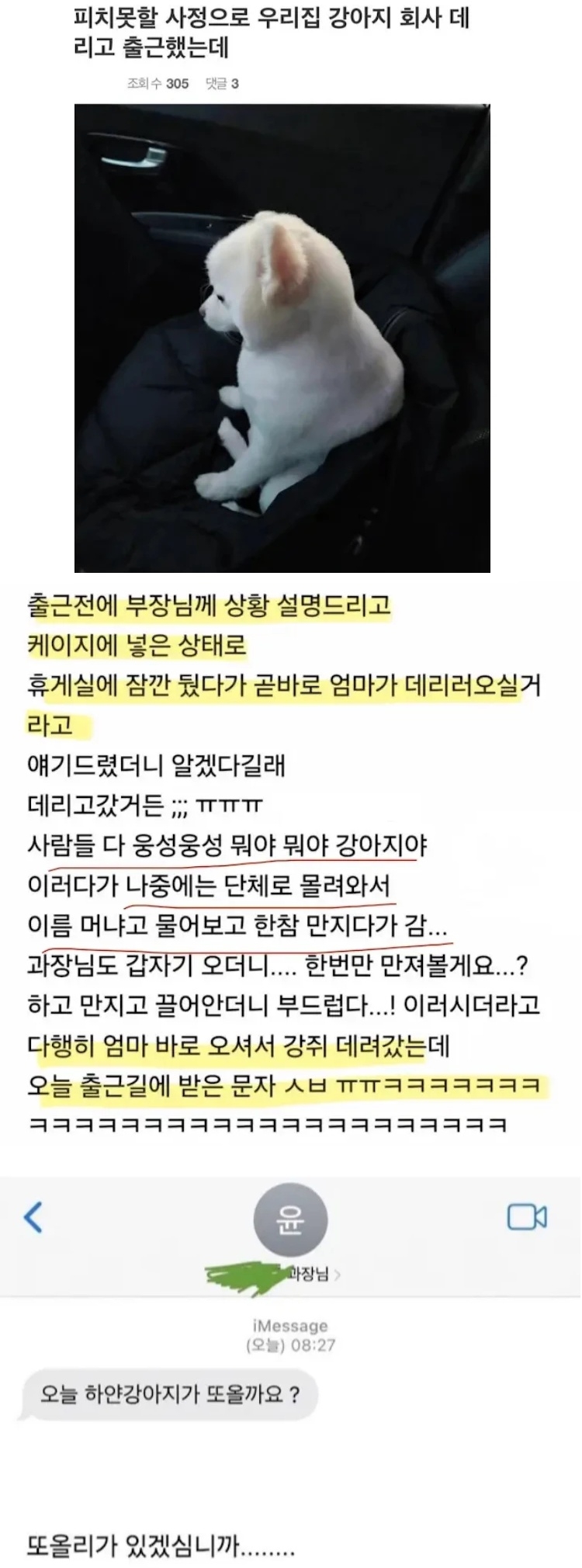 과장님 : 흰 강아지.....오늘은 없나요...? 왜 없을까요..