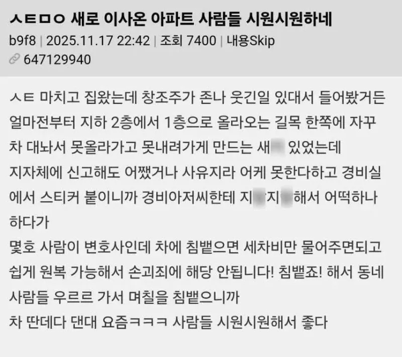 * 주차 빌런 무찌를수 있는 개 꿀팁. 까칠한냥이 2025/11/23