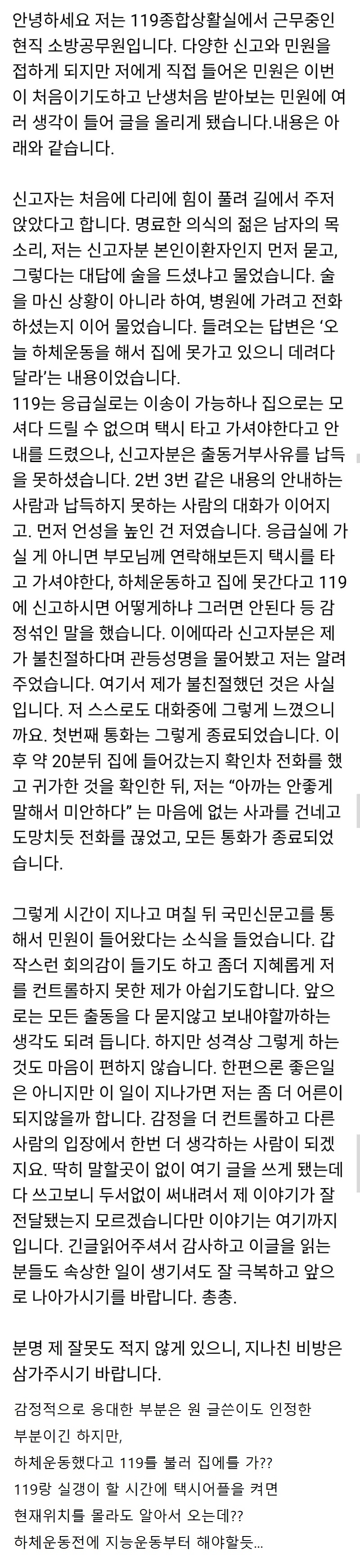 불친절하다고 민원 받은 119 상황실 근무자