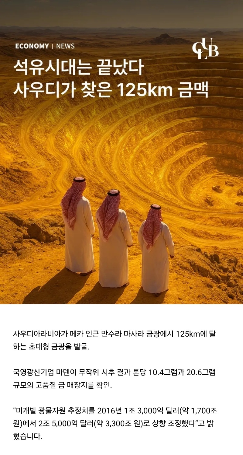 | * | 석유시대는 끝났다, 사우디에서 초대형 125km 황금 벨트 발견. | 하얀물결 | 2025/11/27 |