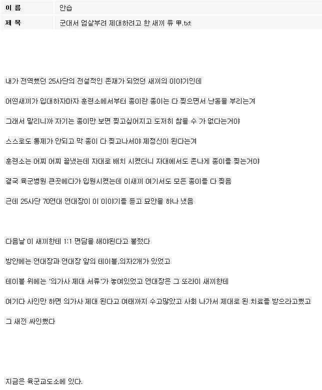 | * | 엄살을 부려서 군대를 제대할려고 하는 어느 군인의 최후. | 까칠한냥이 | 2025/12/02 |