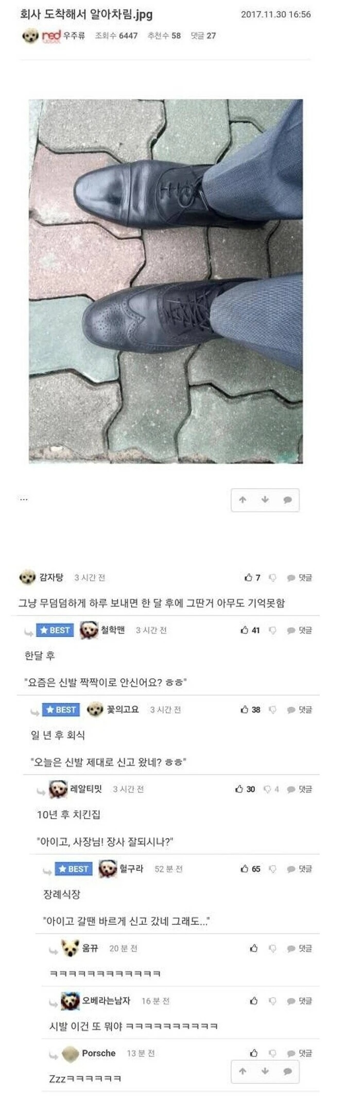 구두 짝짝이로 출근한 사람.