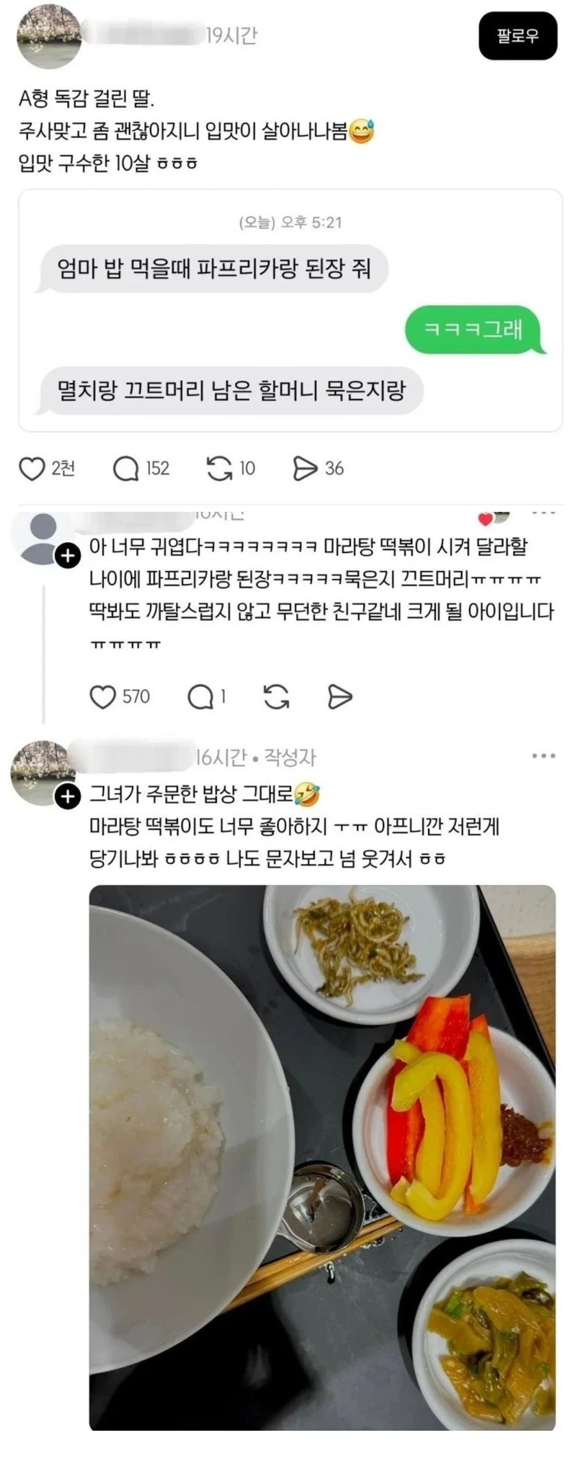 | * | 독감걸린 10살 딸이 요청한 저녁 메뉴 [4] | 까칠한냥이 | 2025/12/08 |
