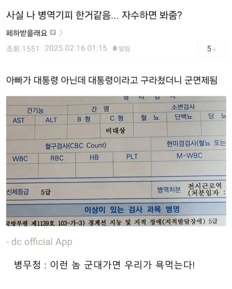 * 병역 기피를 한 거 같다는 디시인. 까칠한냥이 2025/12/24