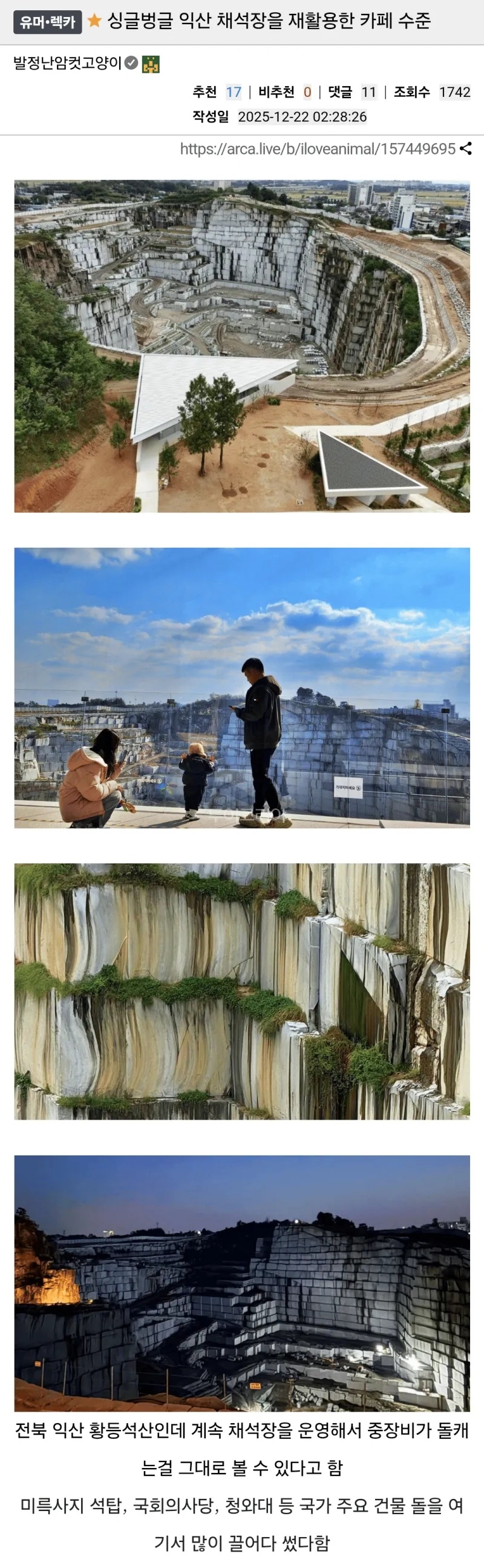 * 익산 채석장을 재활용한 카페 하얀물결 2025/12/24