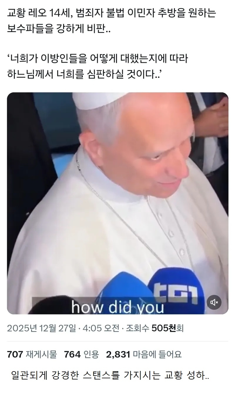 | * | 교황 신께서 고통받는 이방인들을 어떻게 대했느냐 물으실 것 | 향이있는밤 | 2025/12/29 |
