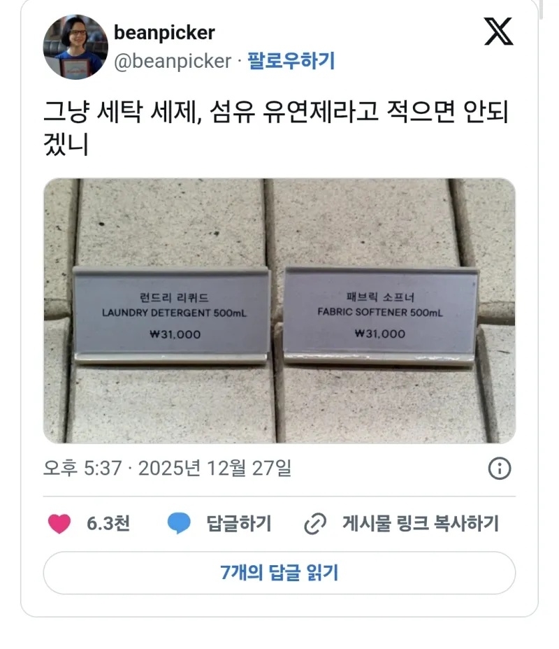 | * | 그냥 세탁 세제, 섬유 유연제라고 적으면 안되겠니 | 향이있는밤 | 2025/12/30 |