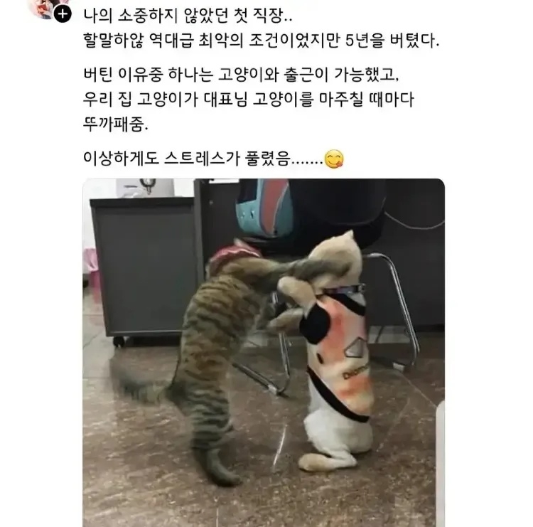 작성자 고양이가 대표 고양이한테 뚜까맞은 날이 사표날인가?