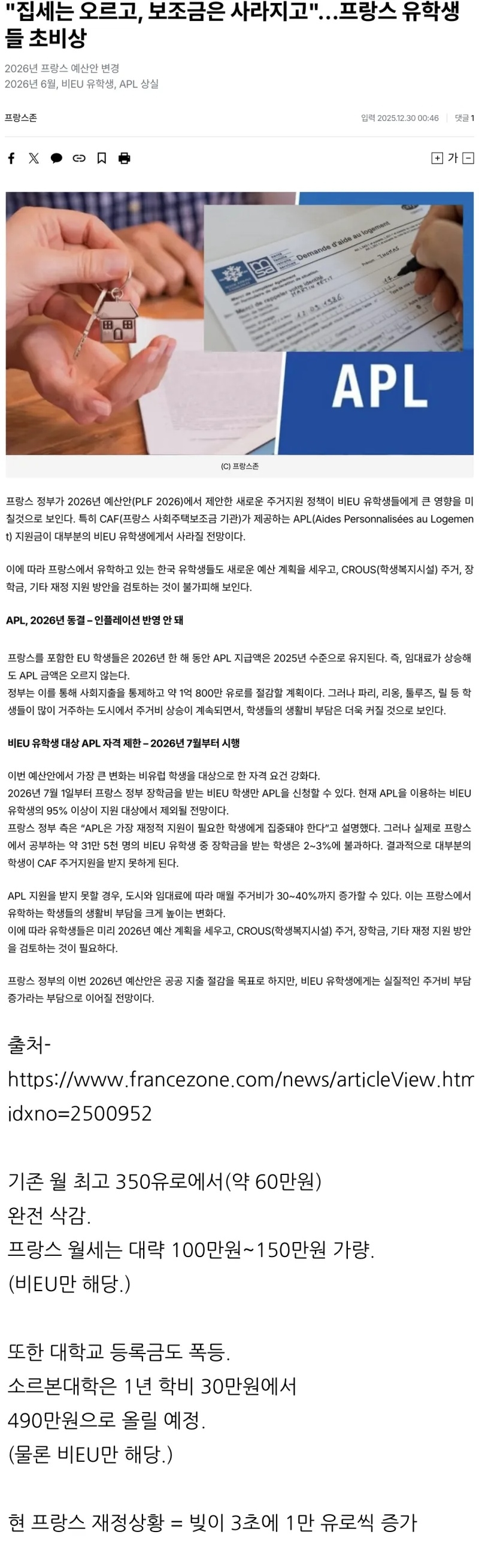 | * | 프랑스, 대학생 주거지원 삭제. [4] | 향이있는밤 | 2026/01/09 |