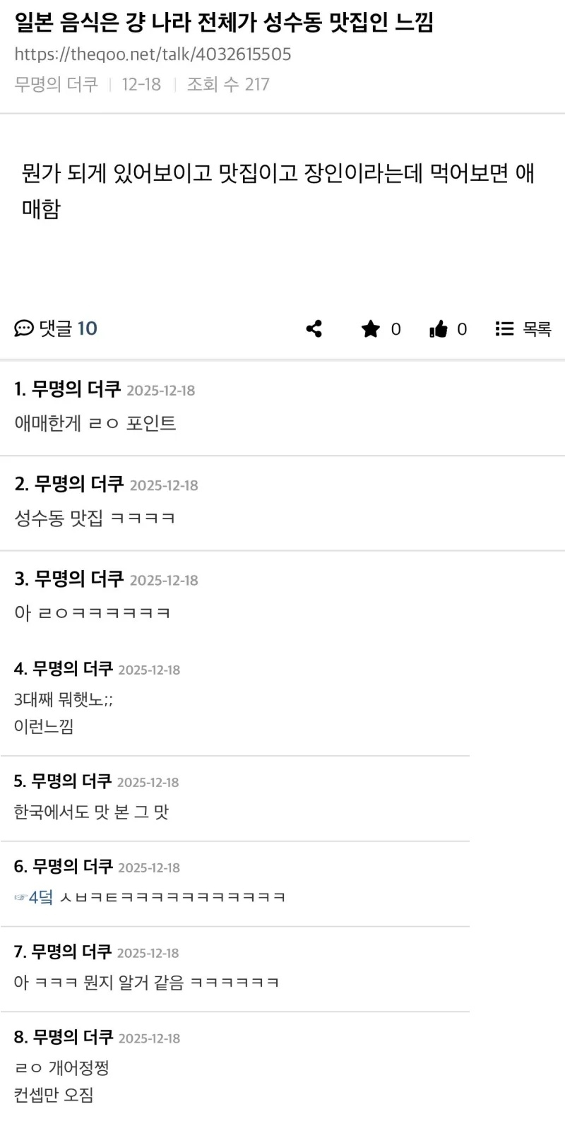 | * | 일본 음식은 성수동 맛집인 느낌 [4] | 향이있는밤 | 2026/01/14 |