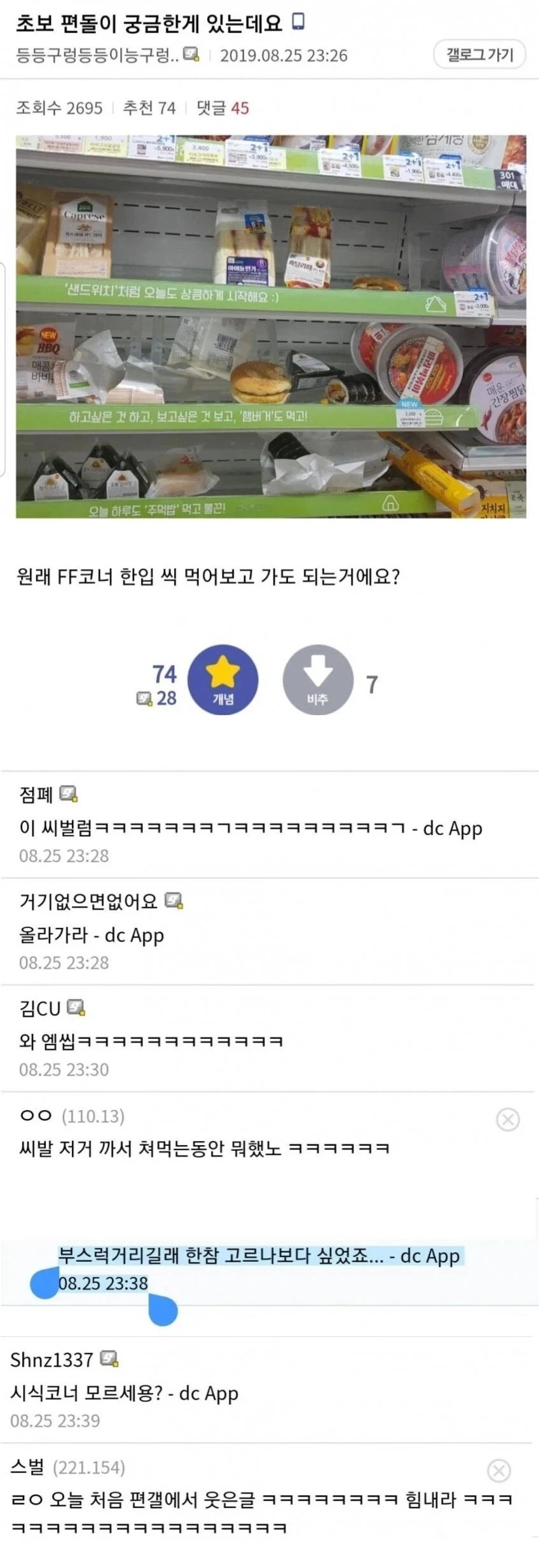 주작같은데.. 저러면 편의점 사장이 노발대발 CCTV 바로 돌리기 때문