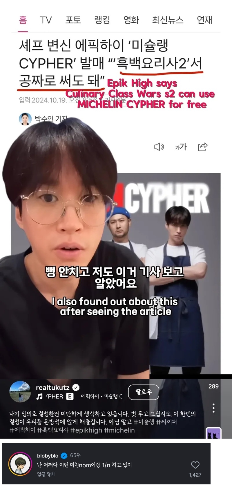 | * | 본인노래가 흑백2에 무료로 사용된걸 몰랐던 타블로 [3] | 금선기 | 2026/01/21 |