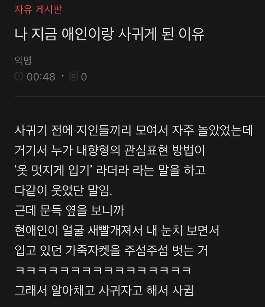 | * | 지금 애인이랑 사귀게 된 이유 [3] | 금선기 | 2026/01/26 |