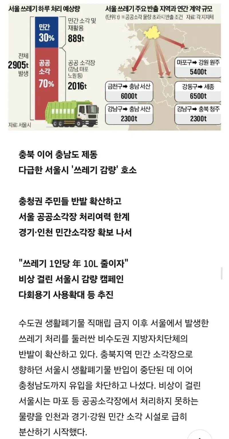 | * | [단독] 서울 쓰레기 안 받겠다…충청권 반입 잇달아 중단 [4] | 금선기 | 2026/01/30 |