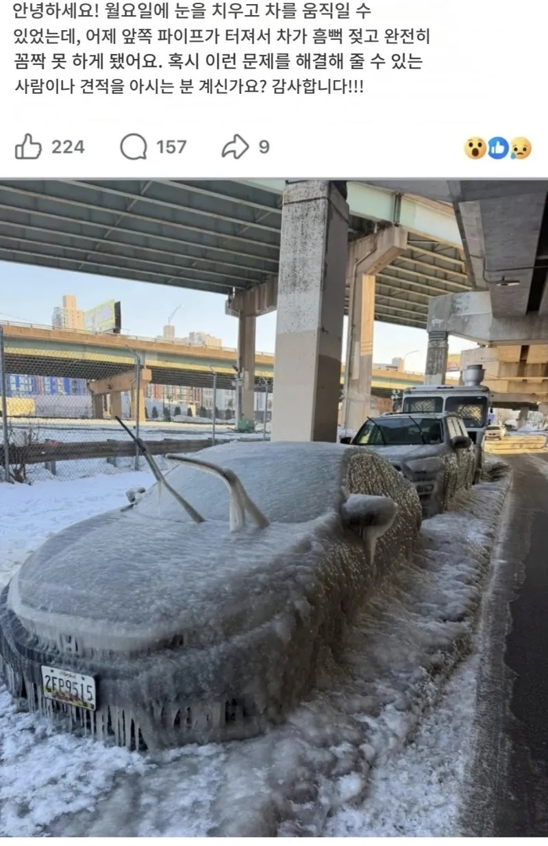녹으면 멀쩡해질건데 괜히 시동걸다가 엔진룸 데미지먹고 폐차댈듯