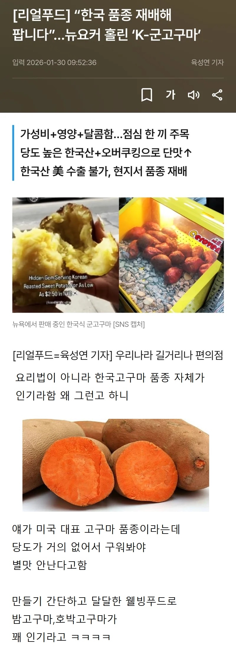 달지 않은데 왜 sweet potato 였음??? 궁금함